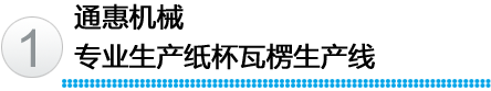 江陰市通惠機(jī)械有限公司,專業(yè)生產(chǎn)紙杯瓦楞生產(chǎn)線,研發(fā)的中空紙杯專用瓦楞杯生產(chǎn)線,S楞、菱形、圓形、點(diǎn)狀形瓦楞紙杯專用生產(chǎn)線。同時,還生產(chǎn)單面瓦楞紙板生產(chǎn)線。